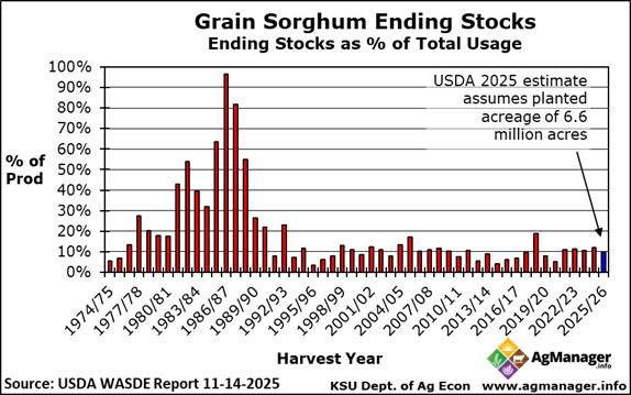 U.S. Grain Sorghum Ending Stocks (as % of Total Usage)