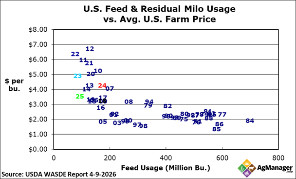 U.S. Grain Sorghum Feed Use versus Price