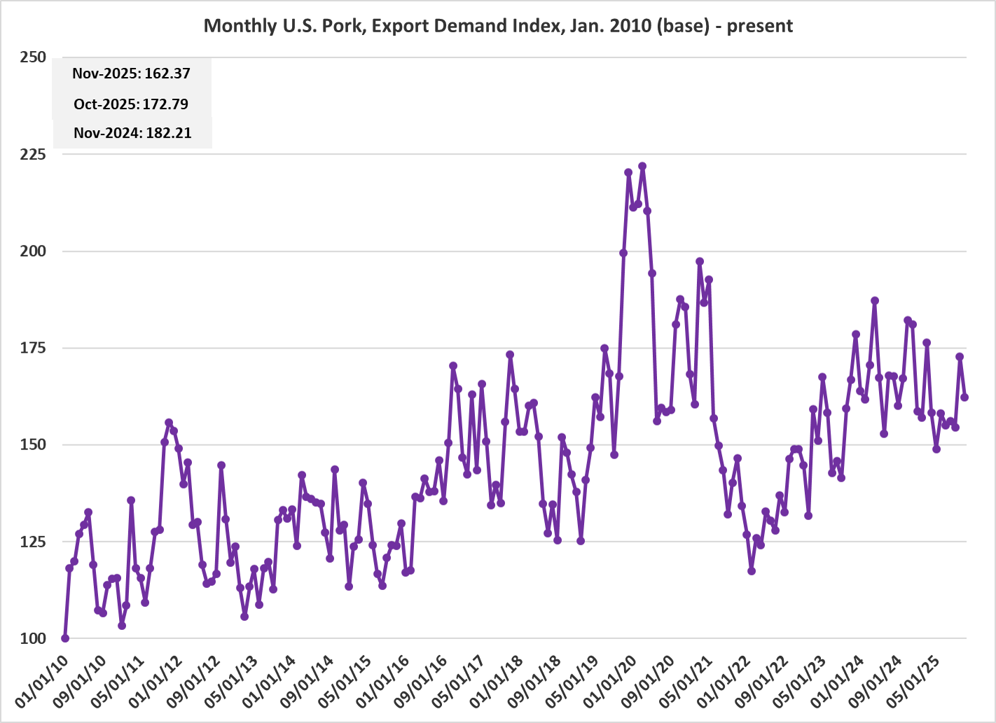 Monthly U.S. Pork Export Demand Index (2010-present)